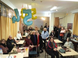 Ακολούθησε η ετήσια κοπή της βασιλόπιτας με συνοδεία πλούσιου μπουφέ. Τυχερή της χρονιάς (της έτυχε το φλουρί) η Εύη Μητρούση.